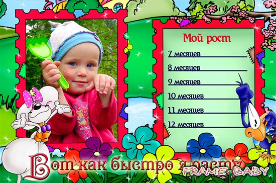 Страница детского альбома девочки с 7 месяцев до года сделать онлайн, Мой рост